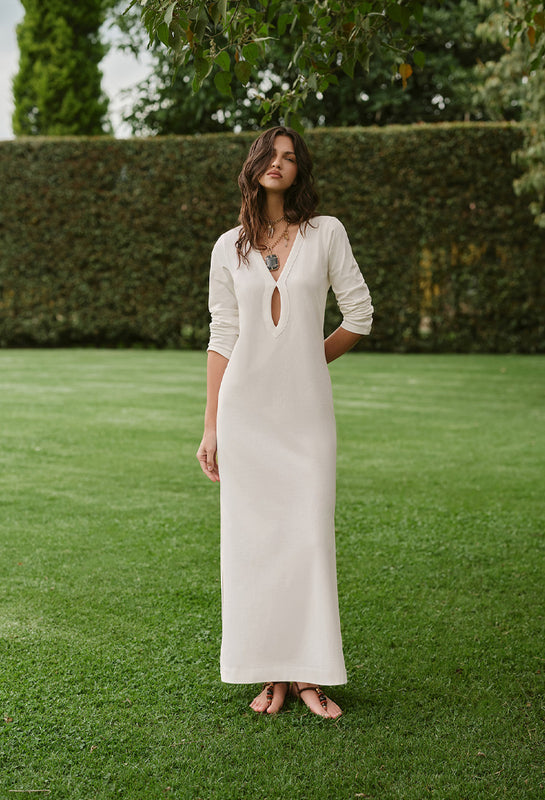 Ecos del Agua explores fluidity, calm, and memory through fresh silhouettes, natural textiles, and tones that evoke the movement of water. A timeless proposal that celebrates the connection between nature and femininity.
