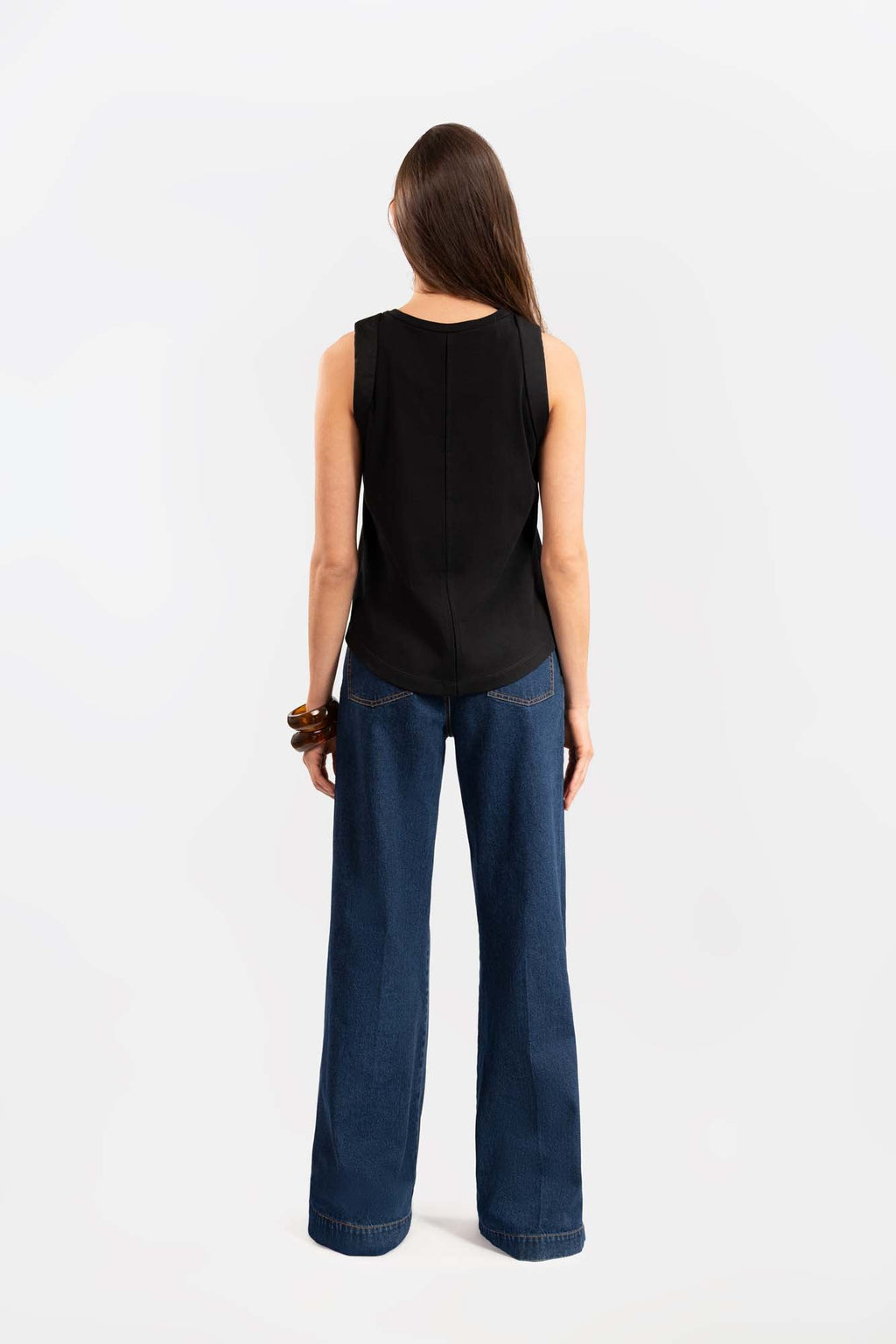 • Style: sleeveless cotton t-shirt with structured shoulder detail